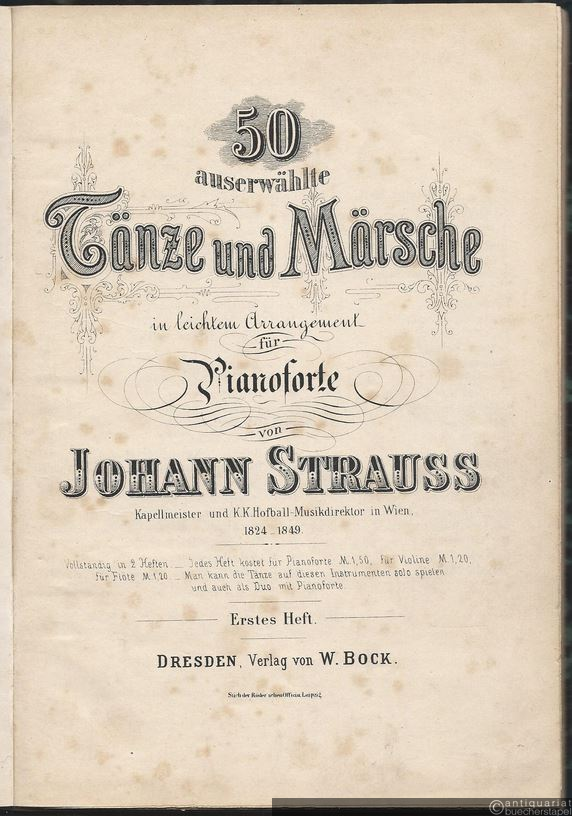 50 auserwählte Tänze und Märsche in leichtem Arrangement für Pianoforte von Johann Strauss. 1. Heft u. 2. Heft [in einem Band].