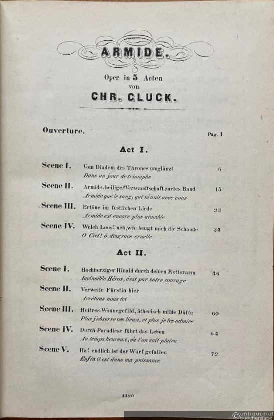 Armide. Oper in 5 Acten von Chr. Gluck (= Opern im Klavier-Auszuge mit Text). Klavierauszug.