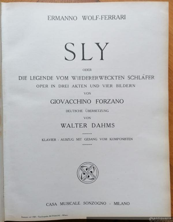 Sly oder Die Legende vom wiedererweckten Schläfer. Oper in drei Akten und vier Bildern von Giovacchino Forzano. Klavier-Auszug mit Gesang vom Komponisten.
