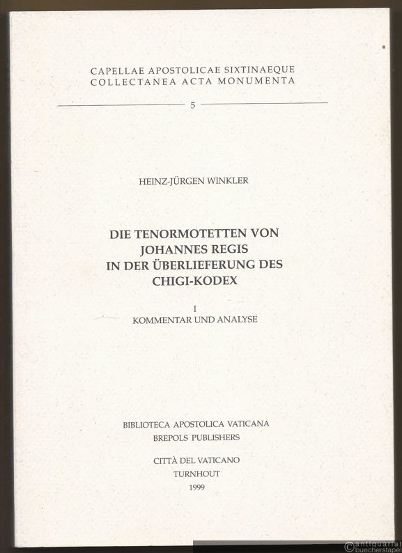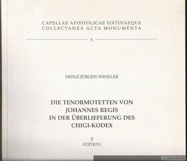 Die Tenormotetten von Johannes Regis in der Überlieferung des Chigi-Kodex. I Kommentar und Analyse. II Edition (= Capellae Apostolicae Sixtinaeque Collectanea Acta Monumenta 5).