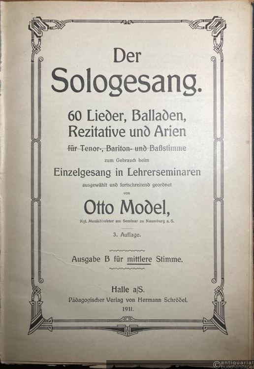 Der Sologesang. 60 Lieder, Balladen, Rezitative und Arien für Tenor-, Bariton- und Baßstimme. Ausgabe B für mittlere Stimme.