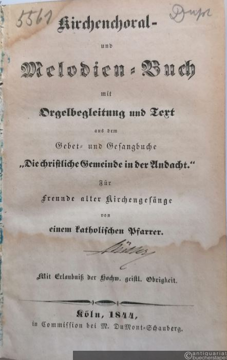 Kirchenchoral- und Melodien-Buch mit Orgelbegleitung und Text aus dem Gebet- und Gesangbuche "Die christliche Gemeinde in der Andacht". Für Freunde alter Kirchengesänge von einem katholischen Pfarrer.