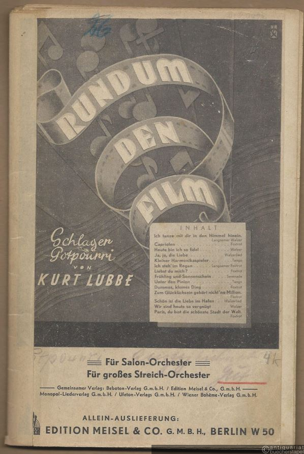 Rund um den Film. Schlager-Potpourri. Salonorchester. 5 Stimmen.