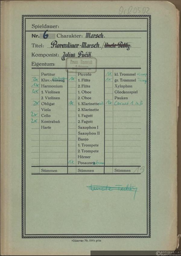 Florentiner Marsch (Grande marcia Italiana) / Marche florentine, Op. 214. Salonorchester. 19 Stimmen.
