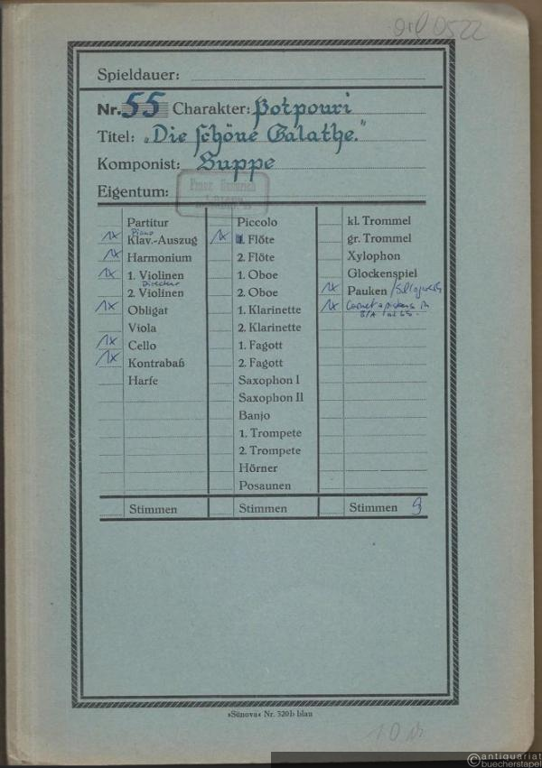 Potpourri aus der komischen Operette: Die schöne Galathe (= Salonorchester No. 308). 9 Stimmen.