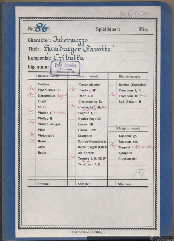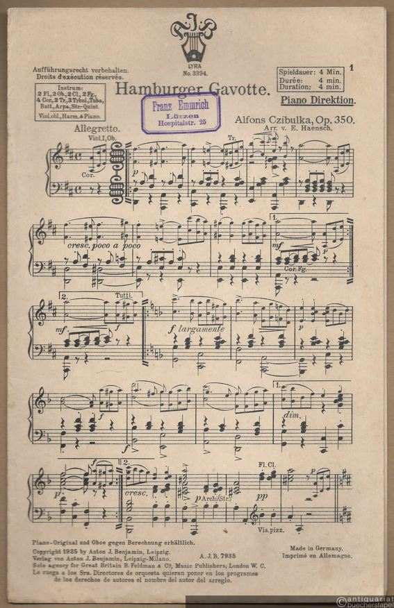 Hamburger Gavotte, Op. 350 (= Lyra No. 3394). Salonorchester. 12 Stimmen.