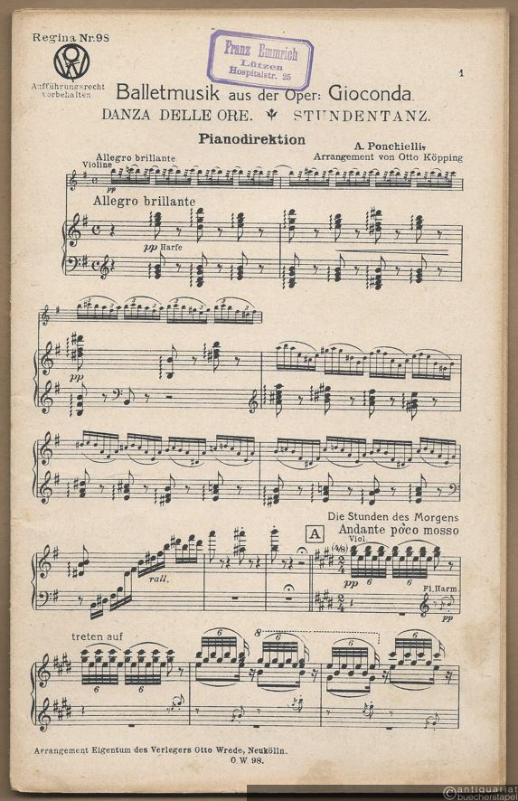 Ballettmusik aus der Oper: Gioconda / Danza delle ore / Stundentanz (= Regina No. 98). Salonorchester. 13 Stimmen.