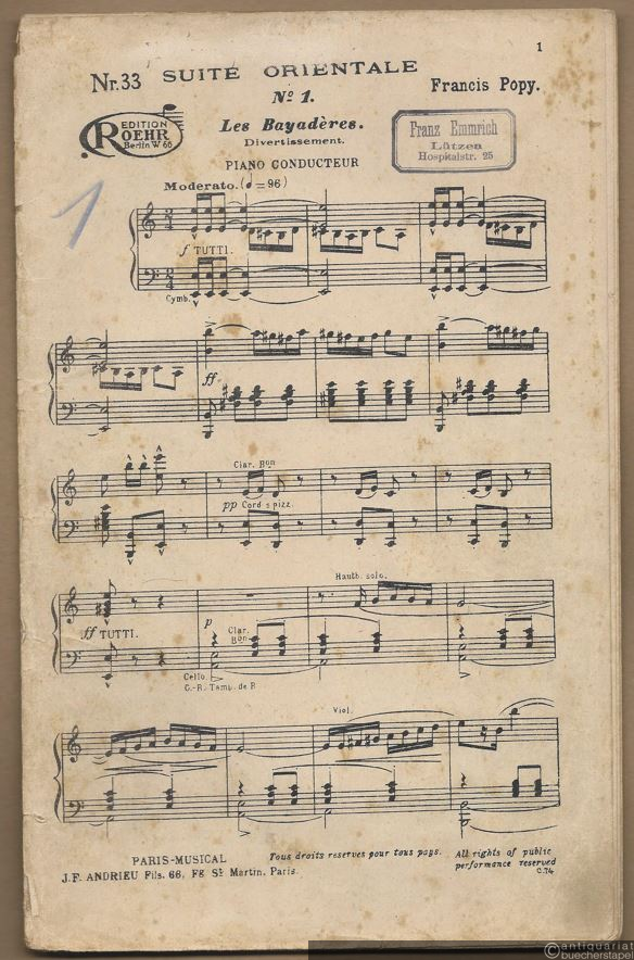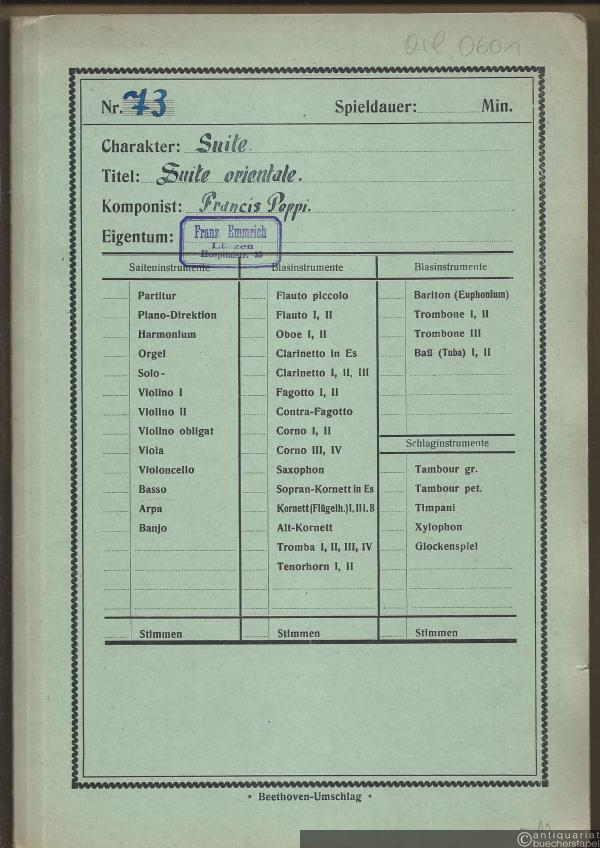 Suite orientale (= Edition Roehr Nr. 33). Salonorchester. 14 Stimmen.