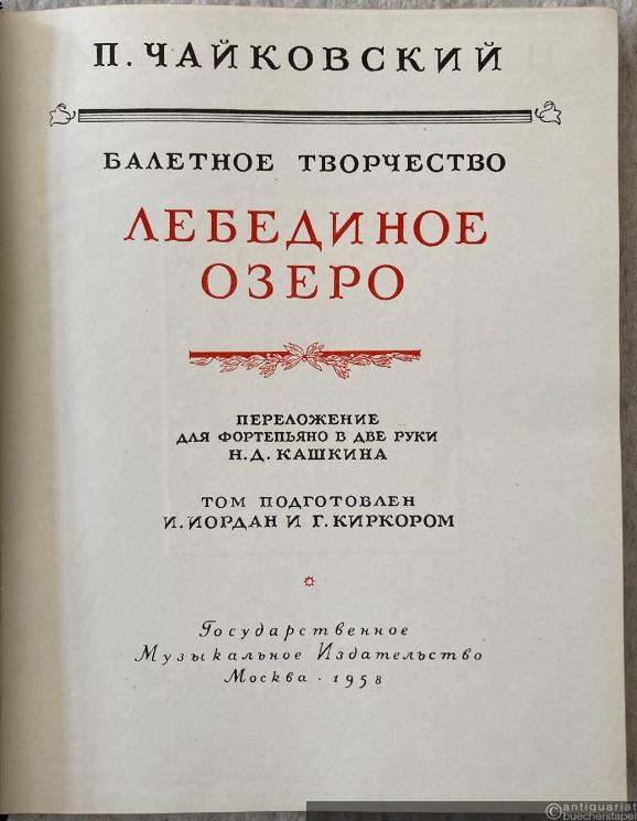 Lebedinoe ozero, sotsch. 20. Balet v 4-ch dejstvijach [Libretto V. P. Begitscheva i V. F. Gel'cera] (1875-1876) / Le lac des cygnes [Der Schwanensee] (= P. Tschajkowskij, Polnoe sobranie sotchinenij, tom 56). Perelozhenie dlja fortepiano v dvuch ruki N. D. Kaschkina [Klavierauszug].