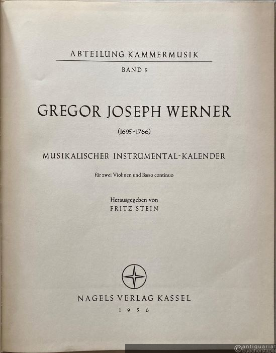 Gregor Joseph Werner (1695-1766). Musikalischer Instrumental-Kalender für zwei Violinen und Basso continuo (= Das Erbe deutscher Musik, Band 31. Abteilung Kammermusik, Band 5).