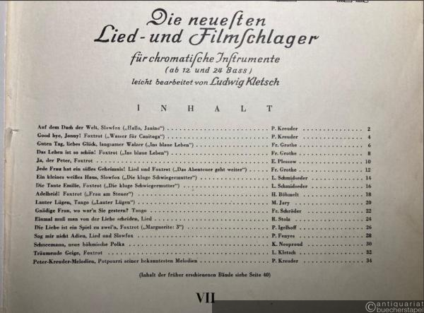 Tanz-Akkordeon. Die neuesten Lied- und Filmschlager für chromatische Instrumente (ab 12 und 24 Bass), Band 7 (= Edition Schott, Nr. 2816).