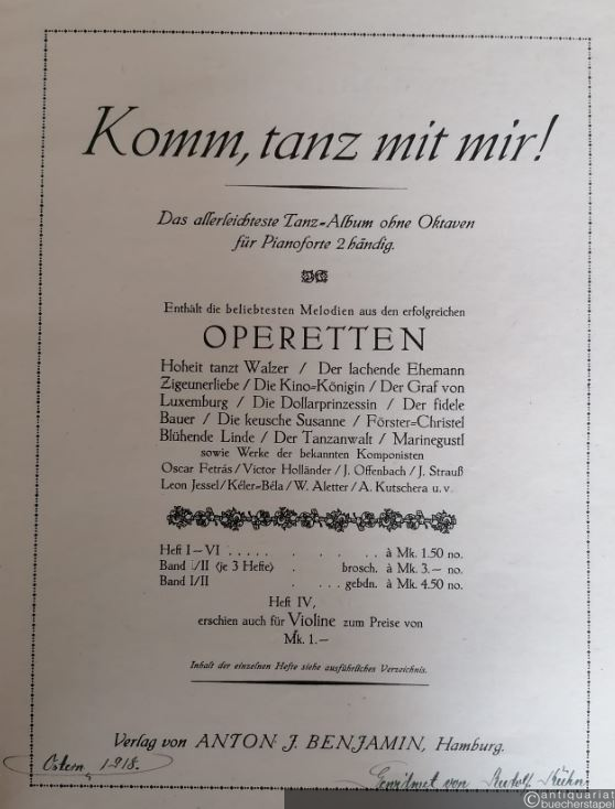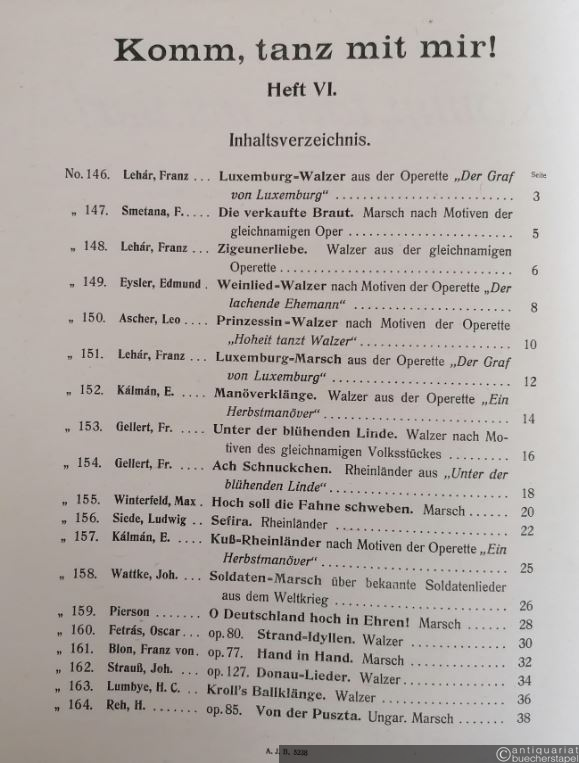 Komm, tanz mit mir! Heft VI (Nrn. 146-164). Das allerleichteste Tanz-Album ohne Oktaven für Pianoforte 2händig / Neuestes Operetten- u. Schlager-Album. Ausgabe für Piano.