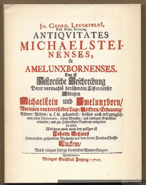 Jo. Georg Leuckfeldi Antiqvitates Michaelsteinenses, & Amelunxbornenses. Das ist Historische Beschreibung derer vormahls berühmten Cistercienser-Abteyen Michaelstein und Amelunxborn [...].