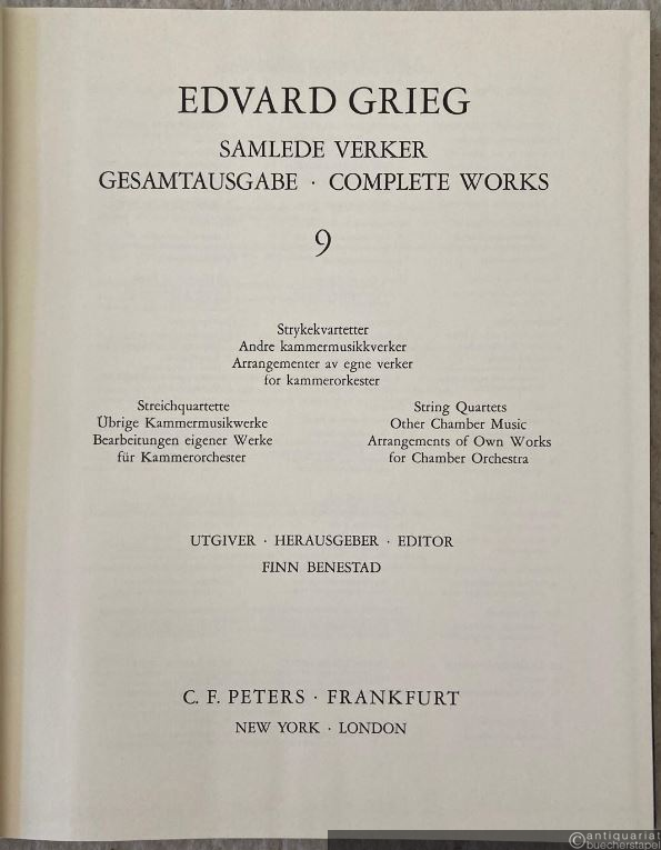Strykekvartetter. Andre kammermusikkverker. Arrangementer av egne verker for kammerorkester / Streichquartette. Übrige Kammermusikwerke. Bearbeitungen eigener Werke für Kammerorchester (= Samlede Verker / Gesamtausgabe / Complete Works, 9. Edition Peters, Nr. 8509).