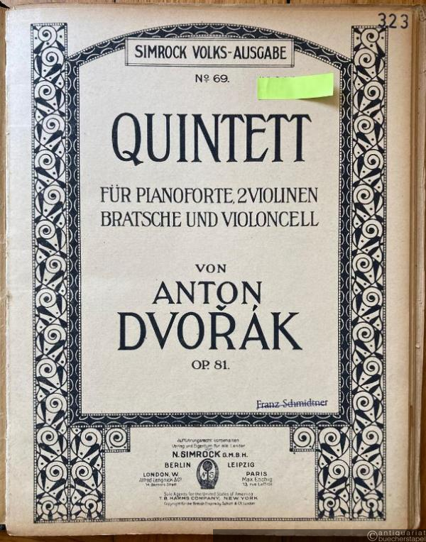 Quintett für Pianoforte, 2 Violinen, Bratsche und Violoncell, Op. 81 (= Simrock Volks-Ausgabe, No. 69). Klavierpartitur und Stimmen.