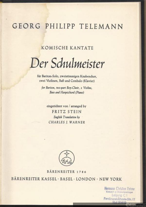 Telemann, Georg Philipp / Fritz Stein (Bearb.) / Charles J. Warner (Übers.)
