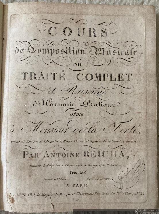 Cours de Composition Musicale ou Traité Complet et Raisonné d'Harmonie Pratique Dédié à Monsieur de la Ferté, Intendant Général de l'Argenterie, Menus-Plaisirs et Affaires de la Chambre du Roi, Par Antoine Reicha.
