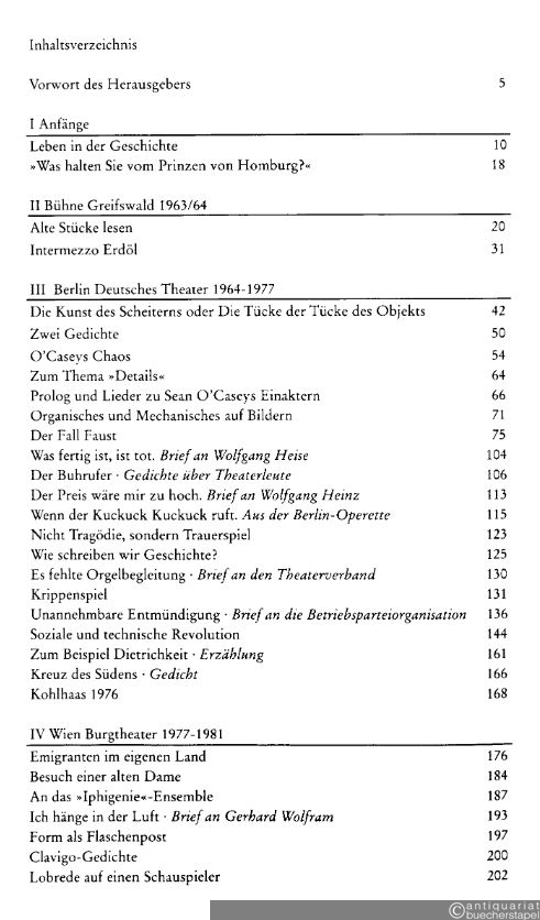 Wieviel Freiheit braucht die Kunst? Reden, Briefe, Verse, Spiele 1964 bis 1999 (= Theater der Zeit, Recherchen, 3).