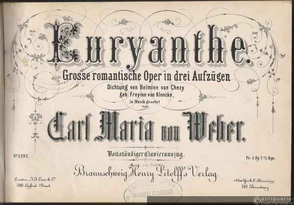 Euryanthe. Grosse romantische Oper in drei Aufzügen. Vollständiger Clavierauszug. - Angebunden: Fidelio. Leonore. Oper in zwei Aufzügen von L. v. Beethoven. Vollständiger Clavier-Auszug. Zweite Auflage.