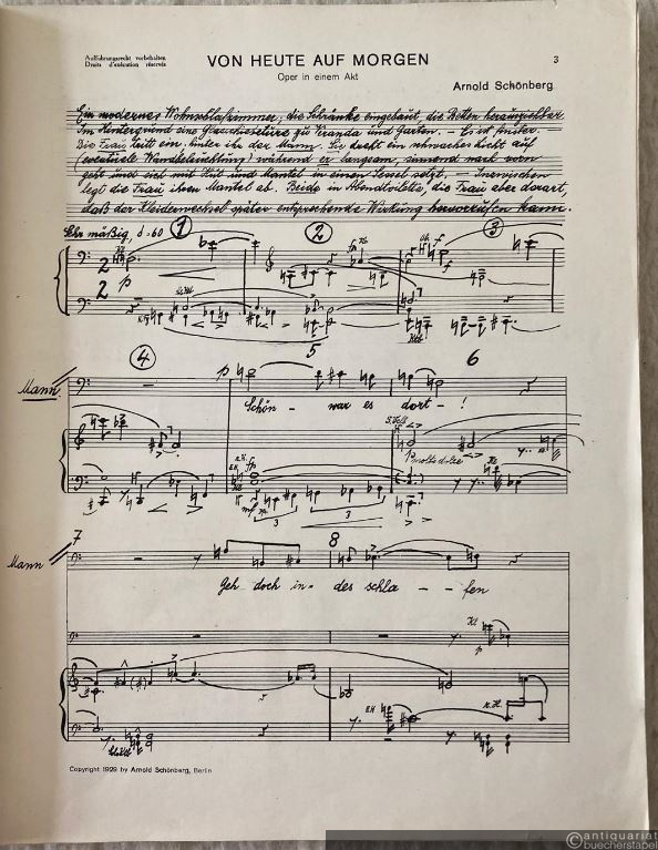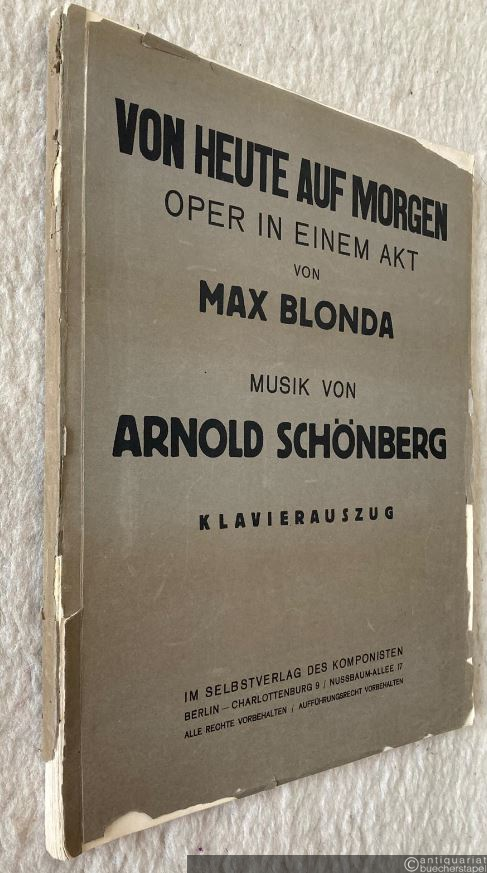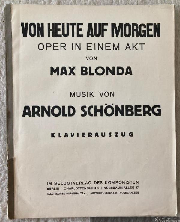 Von heute auf morgen, [Op. 32]. Oper in einem Akt von Max Blonda. Musik von Arnold Schönberg. Klavierauszug.