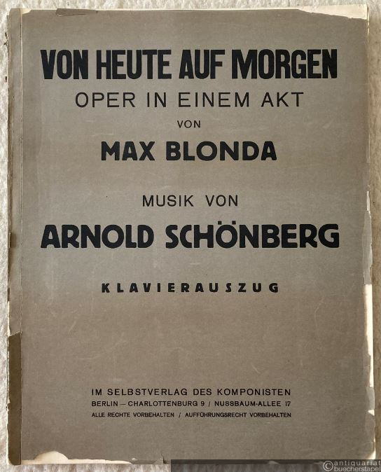 Von heute auf morgen, [Op. 32]. Oper in einem Akt von Max Blonda. Musik von Arnold Schönberg. Klavierauszug.