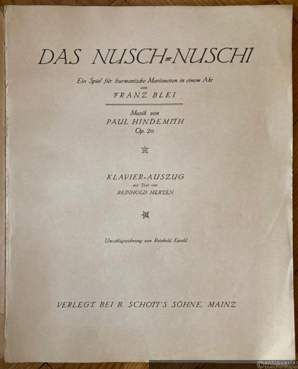 Das Nusch-Nuschi. Ein Spiel für burmanische Marionetten in einem Akt von Franz Blei. Musik von Paul Hindemith, Op. 20 (= Edition Schott No. 3203). Klavier-Auszug.