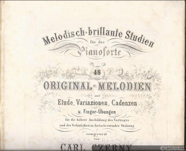 Melodisch-brillante Studien für das Pianoforte. 48 Original-Melodien mit Etude, Variazionen, Cadenzen u. Finger-Übungen für die höhere Ausbildung des Vortrages und der Geläufigkeit in fortschreitender Ordnung componirt von Carl Czerny, Op. 829, Heft 1.