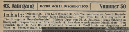 Signale für die musikalische Welt. 93. Jahrgang, Nummer 50. Berlin, den 11. Dezember 1935.