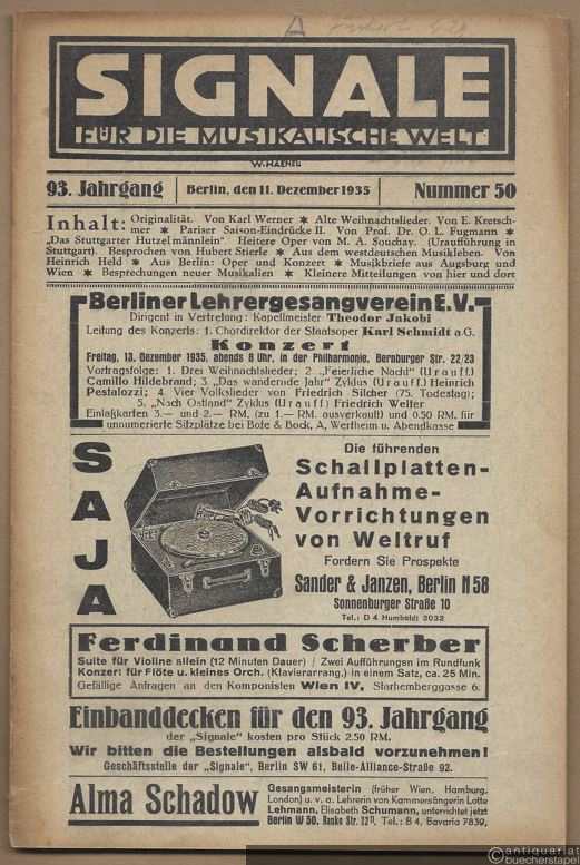 Signale für die musikalische Welt. 93. Jahrgang, Nummer 50. Berlin, den 11. Dezember 1935.