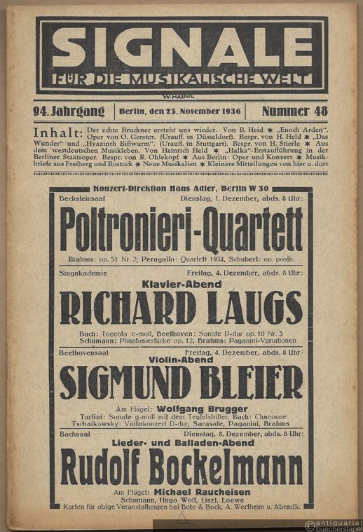 Signale für die musikalische Welt. 94. Jahrgang, Nummer 48. Berlin, den 25. November 1936.