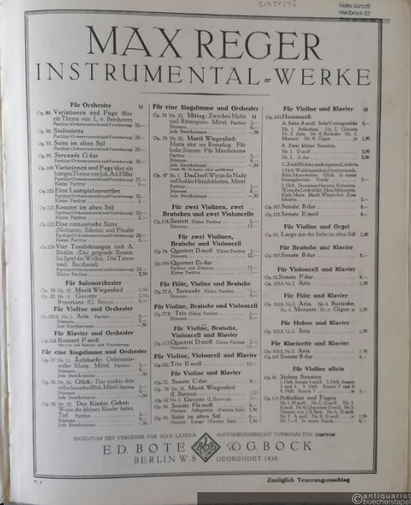 Trio (E moll) für Violine, Violoncell und Klavier, Op. 102 (= Max Reger Instrumental-Werke. Für Violine, Violoncell und Klavier, Op. 102). Partitur und Stimmen.