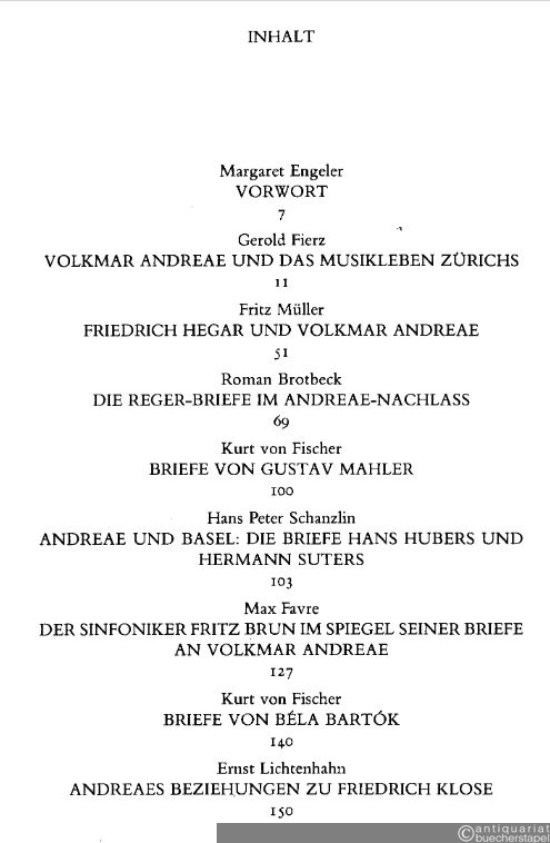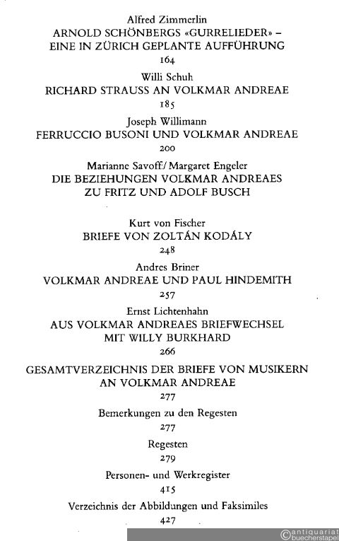Briefe an Volkmar Andreae. Ein halbes Jahrhundert Zürcher Musikleben 1902 - 1959.