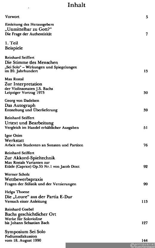 J. S. Bach. Sei Solo. Sechs Sonaten und Partiten für Violine. Interpretation, Aufführungspraxis, Authentizität.