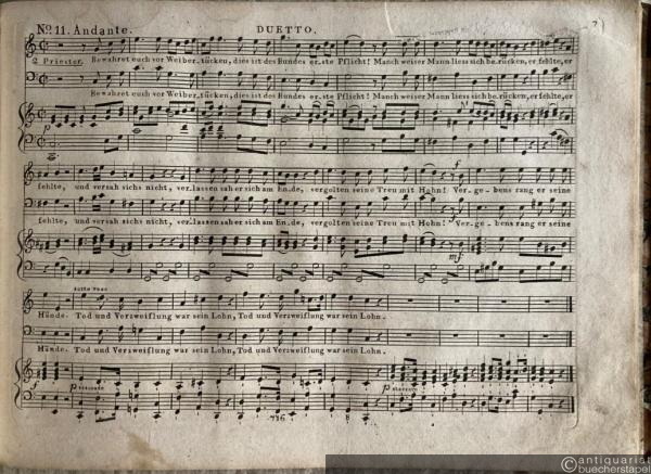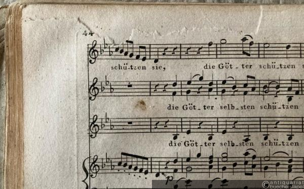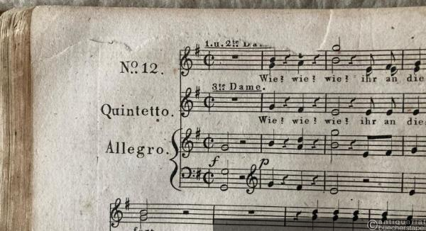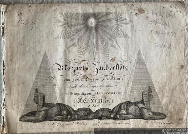 Mozart's Zauberflöte, eine große Oper in zwey Akten [KV 620]. Nach der Originalpartitur im vollstaendigen Klavierauszug von A. E. Müller. I. Akt u. II. Akt [2 Teile in 1 Band, so vollständig - das letzte Blatt des 2. Aktes (S. 77) fehlt].
