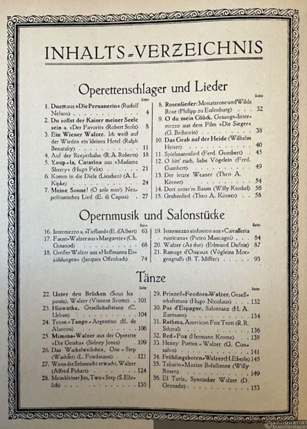 Perlen der Musik. 36 der bekanntesten und beliebtesten Operettenschlager, Lieder, Opernmusik und Salonstücke, Tänze.