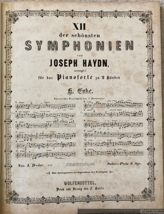 Jos. Haydn's ausgewählte Compositionen. II. Abtheilung. 12 der schönsten Sinfonien für das Pianoforte solo arrangirt von H. Enke. Mit Haydn's Biographie von D. Heinr. Döring als Prämie.