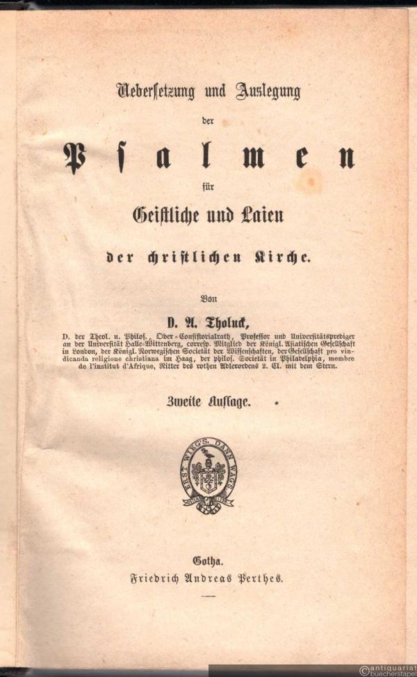 Uebersetzung und Auslegung der Psalmen für Geistliche und Laien der christlichen Kirche.