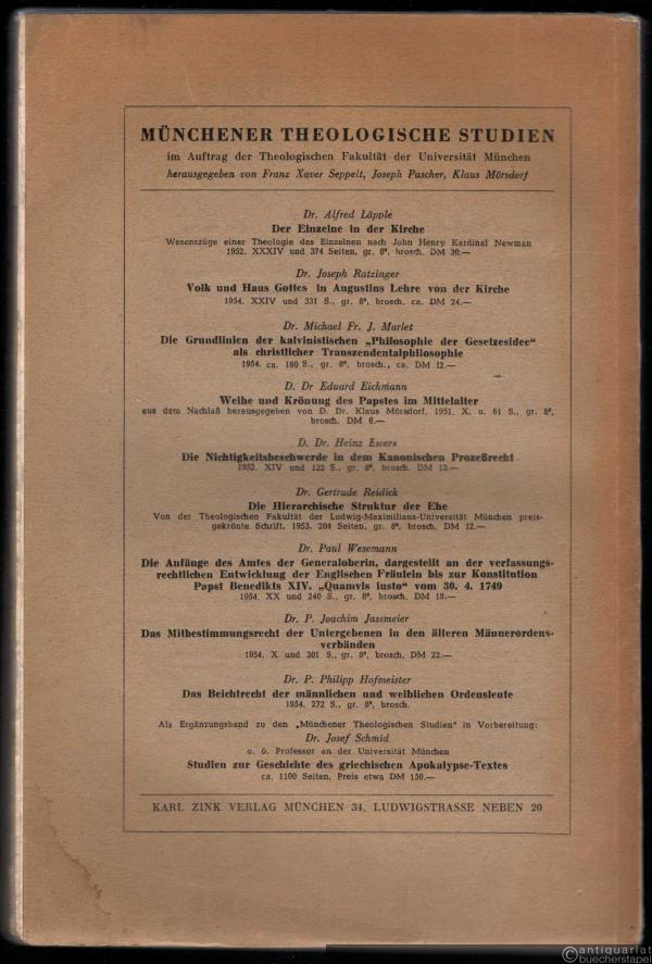 Volk und Haus Gottes in Augustins Lehre von der Kirche (= Münchener Theologische Studien, II. Systematische Abteilung, 7. Band).