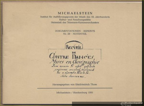 Recüeil de Contre Dances mises en chorégraphie d'une maniére si aisée que toute personnes peuvant facilement les apprendre sans le secours d'aucun maître (= Dokumentationen, Reprints, Nr. 29, inkl. Notenteil).