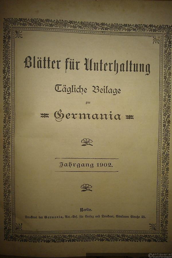 Blätter für Unterhaltung. Tägliche Beilage zur "Germania". Jahrgang 1902.