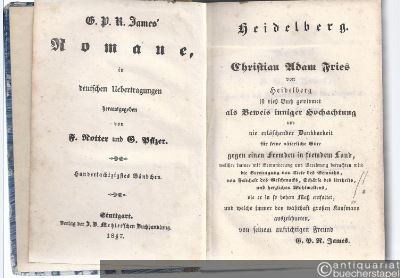 Heidelberg. Roman von George Payne Rainsford James (= C. P. R. James Romane, in deutschen Übertragungen hrsg. v. F. Notter u. G. Pfizer, 180-183).