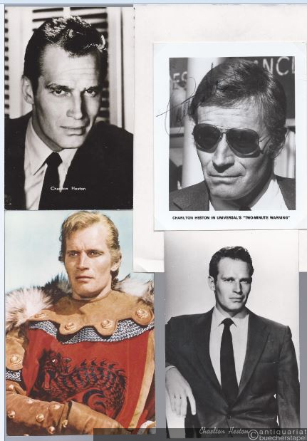 Charlton Heston. The Actors Life. Journals 1956-1976. Im Konvolut mit vier Autogrammkarten, eine davon signiert.