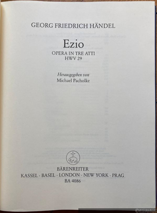 Ezio. Opera in tre atti (HWV 29) (= Hallische Händel-Ausgabe. Kritische Gesamtausgabe, Serie II: Opern, Band 26). BA 4086.