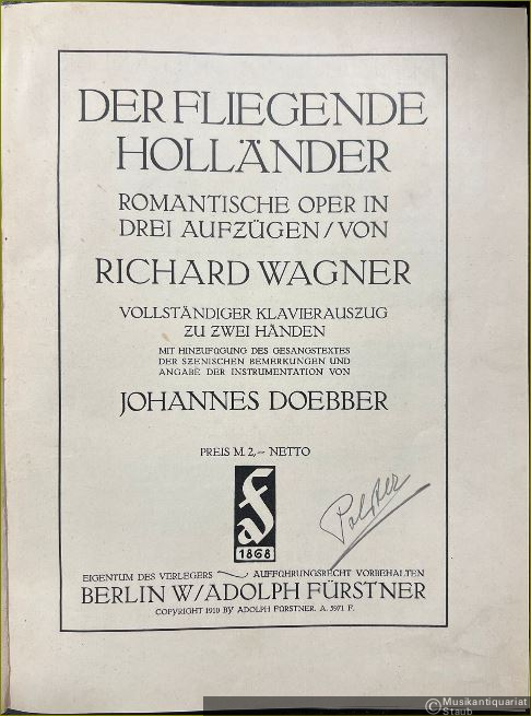 Der fliegende Holländer. Romantische Oper in drei Aufzügen. Vollständiger Klavierauszug zu zwei Händen.